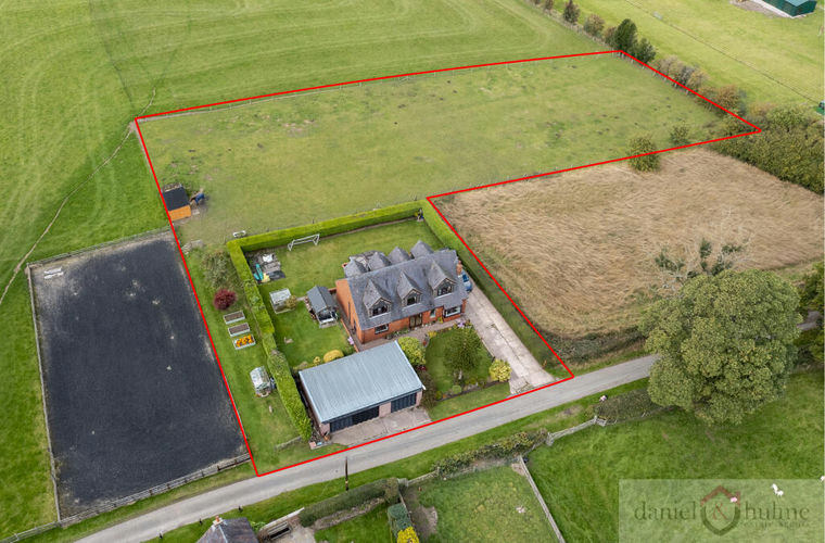 Barnfields Bungalow enjoys an enviable position at the end of a quiet country lane in Kingsley, with only traffic passing for the neighbouring property. The home is set within a generous plot that includes wrap-around gardens, a paddock, and a range of outbuildings offering exceptional versatility. Mature trees, well-kept borders, and landscaped patio areas create a peaceful countryside setting, ideal for those seeking space, privacy, and a semi-rural lifestyle. The substantial detached outbuilding provides scope for garaging, workshops, or conversion to a home office or annexe (subject to any necessary consents), while the paddock, stable, and tack room make this an attractive choice for anyone with equestrian or smallholding interests.