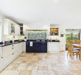 At the heart of the home lies a superb kitchen and breakfast room, designed very much with both everyday living and entertaining in mind. This sociable space combines traditional styling with practical features, including a classic Aga, quality cabinetry and ample workspace, all complemented by natural light and direct access to the gardens.