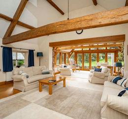 Michaelchurch Court is set in a glorious rural location some 5 miles west of the market and tourist town of Ross-on-Wye and some 10 miles south of the cathedral city of Hereford. The location was originally the site of a rural mill and miller’s cottage, later being developed into the fine, Listed Grade II stone and brick farmhouse which we see today. Like most period properties of this nature, successive generations have added to the main structure, with the current owners designing and a stunning, Oak framed garden room extension some 9 years ago, which has resulted in a truly beautiful 28’ living and entertaining area.
