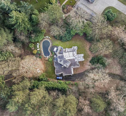 Outside - Nestled on the outskirts of Newstead Abbey situated on a vast one-and-a-half-acre plot, this exceptional garden boasts panoramic, breathtaking views at every turn. Surrounded by mature woodland, the plot offers complete privacy, creating an idyllic, secluded retreat. The garden is a true haven, featuring your very own swimming pool, complete with seating around its perimeter, allowing you to bask in the sunshine or cool off in the crystal-clear waters—a personal holiday escape right at home. The indulgence doesn’t end there; an elegantly decked seating area provides additional space, perfect for entertaining. At the front of the property, gates lead to a spacious driveway offering ample parking. This magnificent outdoor space perfectly balances luxury, privacy, and convenience.