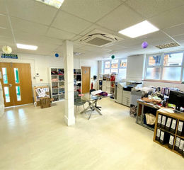 Office - 4.7m x 3m - Air conditioning, wall mounted electric heater, suspended ceiling, telephone points, power sockets, wall and base unit with work surface, stainless steel sink with mixer tap, double glazed window to front.
