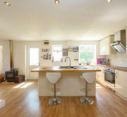 The lounge area boasts a wood-burning stove - a staple of country life - and a door which leads out to a bijou sunroom, which provides a peaceful reading nook.