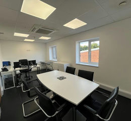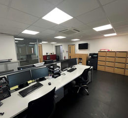 The property comprises a detached two storey building which provides storage on the ground floor and offices on the first floor. The building which was extended and reconfigured in 2010 was designed to provide two self contained properties. The property is currently occupied as one but could be divided to provide two self contained units. Each of the units has its own pedestrian access door, roller shutter (2.30m wide x 2.40m high), kitchen and WC. The first floor of each unit provides a mix of well presented open plan and private offices which benefit from suspended ceilings with inset LED lighting and air conditioning. Externally there is parking for at least 6 cars as well as EV charging points. The site is tucked away from the main estate road and is set behind a secure gated entrance.
