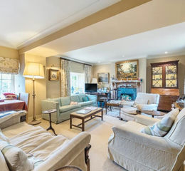 An exceptional and highly desirable Grade II listed house in an elevated position commanding far reaching views overlooking the Village Green with a wonderful mature garden, a collection of small stone outbuildings, 2 carports and a highly sought after 2 acre paddock with small spinney and pond.
