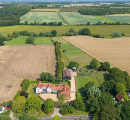 A contemporary country house with annexe, detached barn, stables and paddocks, set back in 6.7-acres surrounded by farmland. Offered with no onward chain.