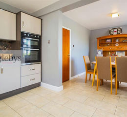 Kitchen & Dining Area - 5.87m x 3.89m (19'3" x 12'9") - A range of wall, base & drawer units. Marble effect laminate worktops with matching splash-backs, designed Wellhams. Integrated eye-level double electric oven with separate induction hob. Extractor hood. Integrated wine cooler & fridge / freezer. LED downlighting. UPVC double glazed window to the front aspect. Karndean flooring. Open archway to the Dining Area, with UPVC double glazed window to the side aspect, Karndean flooring & radiator.