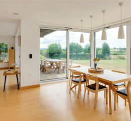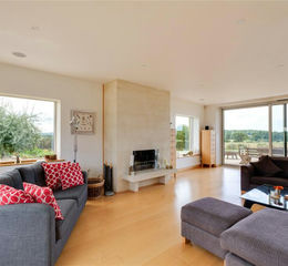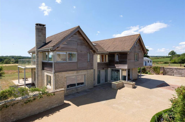 Designed for the current owners and completed in 2007, Waterloo Farm is a beautiful family home that takes full advantage of its wonderful setting within the landscape. The rear aspect of the house faces south-west, looking out through wide picture windows across the Dorset countryside towards Bulbarrow Hill. The house is set back off a quiet country lane in an elevated setting and is faced with honey-coloured local stone and timber under a tiled roof. Its position catches the sun throughout the day filling the interior with natural light.Most of the ground floor occupies a single space thoughtfully arranged into separate areas, all of which look out at the lovely countryside views. There are large windows on three sides, with glazed sliding doors to an external dining area and extensive terrace. The interior has been designed as a welcoming, adaptable layout, incorporating the latest lighting and window blind technology. Adjacent seating and dining areas are grouped around an open fireplace along with a further separate seating area in a glazed orangery. The central space is lit by a large rooflight and accommodates the beech, glass and chrome staircase to the first floor.