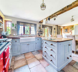 Inside, the house is full of character and charm, offering over 4,500 sq. ft of living space. The reception room, with its exposed brickwork and log burner, is the heart of the home, the perfect spot to gather and enjoy the ever-changing view. The kitchen/breakfast room opens out to the garden, ideal for family meals and entertaining. Downstairs also offers a dining room, family room, study, utility, and cloakroom.