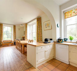 Built in 1874, The Old Vicarage is a predominantly hamstone property set across three expansive storeys, offering exceptionally versatile living space. A true example of Victorian grandeur, the property is flooded with natural light, showcasing generous proportions, high ceilings and enduring architectural elegance. Rich in period charm yet unencumbered by listing restrictions, the home effortlessly blends heritage features with modern day comfort. From the sweeping staircase and reproduction Victorian tiles to the original sash windows and warm wooden floors, every detail reflects quality and character. The impressive drawing room, with its large bay windows, French doors and open fireplace, offers an elegant setting for both entertaining and everyday living. The spacious kitchen, complete with a gas fired Aga (green), invites relaxed family gatherings and warm hospitality.