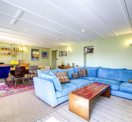 The sitting room forms the heart of the home, featuring a cosy wood-burning stove set within an inglenook fireplace, complemented by warm spotlighting and characterful beamed ceilings. This inviting space also accommodates a dining area towards the rear, making it perfect for both everyday living and entertaining.