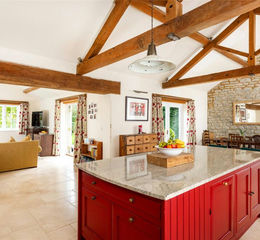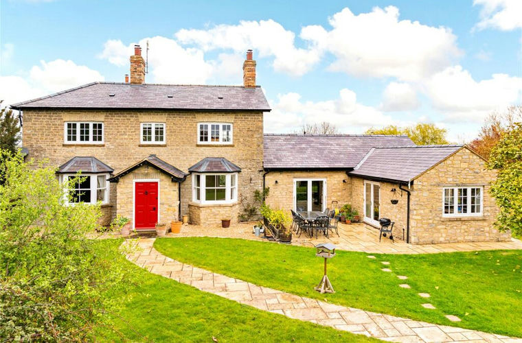 An 18th-century stone under slate five bedroom farmhouse that has been extended over the years and recently restored and modernised, including a ground floor one-bedroom guest suite that could function as an independent annexe, detached garaging, a driveway with parking for up to ten cars, and front and rear gardens, set on a nearly 2.5-acre plot overlooking open countryside. Thought to have been built in the mid-18th century, this Cotswold stone farm, outside Marsh Gibbon, is surrounded by open farmland but has connections to Oxford and Bicester, with train links to London. The George II building was updated during the 19th- century and has recently been sympathetically restored by the current owners who have converted an adjoining agricultural barn to an open plan kitchen/breakfast/dining room. All modernisation has been done to high specification, but care has been taken to retain original features such as interior exposed stone walls, the Georgian staircase, and a first floor fireplace. Where rebuilding was necessary, exemplified by the open fireplaces, original structural timbers, building stones and flags were conscientiously reused. As a result, the house provides convenient and flexible living accommodation, including a ground floor annexe which could be used for intergenerational living or guests, while retaining the integrity of the farmhouse.