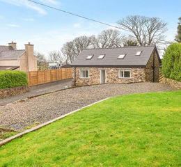 Situated towards the centre of the Isle of Anglesey, surrounded by miles of open countryside is this delightful extended Barn Conversion which stands within its own generous garden grounds including a separate paddock, all-in-all amounting to approx. 2 acres. The property was converted by the current owners in 2018 and certainly offers potential for further development, subject to the usual planning consents. The delightful interior, whilst offering much charm with its thick walls and feature exposed stone wall comes tastefully modernised and is considered ready for immediate occupancy. A highlight is surely the sizeable open-plan living room and kitchen which comes fitted with an Aga multi-fuel stove and the kitchen comes fitted with a built-in double oven, hob, fridge and freezer. Also located on the ground floor is a decent sized bedroom and modern shower room. Located on the first floor are a further 2 bedrooms with the larger bedroom enjoying a modern en-suite bathroom. Externally, the property is approached along its own private gated driveway culminating in ample off road parking. The driveway leads to the rear allowing access to the paddock. The garden to the front is spacious and laid to lawn. To the rear is a raised rear garden featuring natural rocky outcrops, a raised lawn and private paved patio area. The paddock enjoys panoramic views across Anglesey. The property comes fitted with uPVC double glazing and oil central heating. This unique home would be ideal for a keen gardener, hobby farmer or equestrian enthusiast.