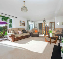- Large open plan sitting room with wood burner and glazed double doors opening to the gardens