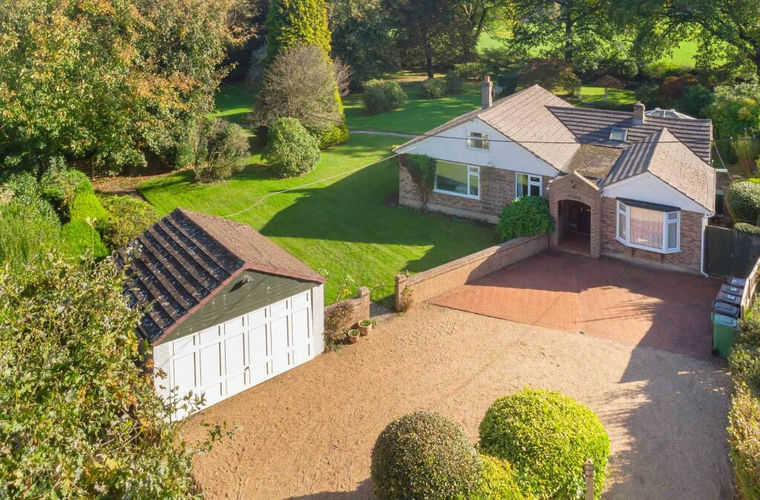 Located in a spectacular rural position, a four bedroom (two bath/shower rooms) detached bungalow immediately adjoining open fields and countryside with gardens and grounds extending to just under one acre offering peace and seclusion. This fine home, is offered for sale with no ongoing chain and offers light and well-proportioned accommodation which extends to 1,683 sq. ft. The gardens and grounds provide an outstanding backdrop and offer stunning views across the adjoining farmland and rolling countryside with a paved patio immediately adjoining the rear of the property the remainder laid to level lawn interspersed and flanked with an extensive variety of mature shrubs and trees, the total plot extends to just under one acre. The well-planned accommodation comprises in brief, a deep covered entrance, an L shaped reception hall, an outstanding double aspect sitting room with wood burner and glazed double doors opening to the patio and gardens, a separate dining room, a large part brick constructed conservatory with further doors opening to the gardens, a kitchen/breakfast room, a master bedroom with en-suite shower room, three further good size bedrooms and a family bathroom. Outside the property is approached via a large gravel driveway which provides parking for a number of vehicles to one side of which is a detached double garage. The gardens and grounds surround the property on all sides and provide a fine backdrop within which are several useful outbuildings/timber stores. The total plot offers peace and seclusion and extends to just under one acre. EPC Band tbc. Council Tax Band G.