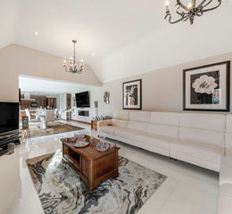 Upon entering the property, you are immediately greeted by a double door opening and into a welcoming hallway. Throughout the property, the home features impressive hardwood finishes and zonal underfloor heating, conveying a sense of quality and craftsmanship. The heart of the home centers around an open plan living space which boasts a bespoke kitchen with fitted appliances, large tiled flooring, and an impressive feature fireplace while elegant bi-folding doors provide an abundance of natural light perfect for socialising and entertaining guests. There is a seamless transition between the interior living space and the landscaped garden which enjoys the sun throughout the day. This fluid layout is designed for both intimate family life and regular entertaining, in addition the home has a versatile garage conversion, currently utilised as a vibrant garden room. While this space offers immense flexibility for a home gym, office, or cinema room, it has been cleverly designed so that it could easily be reinstated as a functional garage if desired.