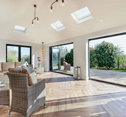 Living Room - A triple aspect room with double glazed double doors. A further two sets of bi-folding doors. Four skylights. Access to ...