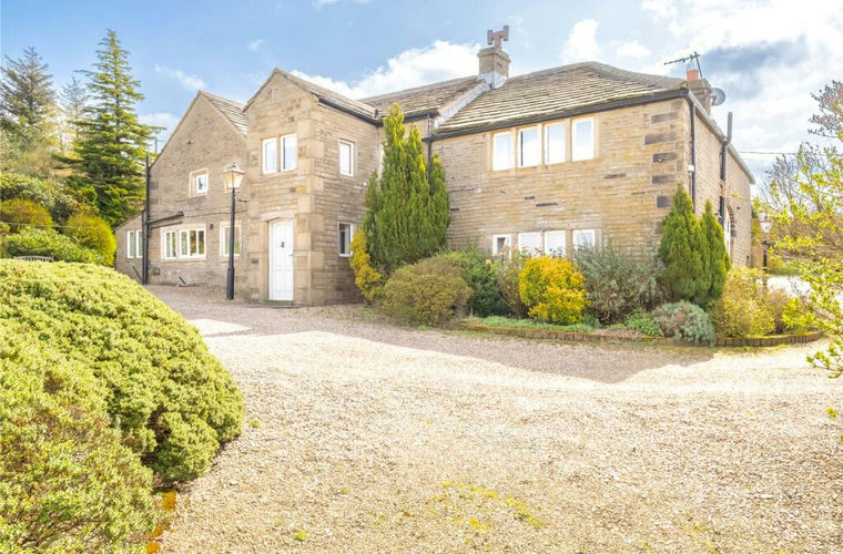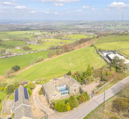 Hill End Farm is an imposing period property steeped in history of stone construction beneath a pitched stone slate roof. Altered and upgraded over the years, the property boasts an array of period features including exposed stonework, exposed beams and timbers and stone mullion windows, not forgetting the stone fireplaces and the quirks and appeal of such an engaging and charming home. The property sits within a generous plot of 1.7 acres including its own field to the front. The location is key here as the views to the front are particularly impressive, offering far reaching views over the field, agricultural land and far beyond. The majority of the property benefits hugely from this striking aspect which can only be truly appreciated by visiting this family home. Located on Wall Nook Lane down a private drive, Hill End Farm sits a short distance from the hugely popular village of Shepley with its local amenities, shops, junior school, cricket club, public houses, railway station and church. It is a little over three miles from Holmfirth centre and within easy commuting distance to the M1. On the doorstep are great rural walks embracing the location and countryside. The day-to-day entrance to the property is through a panelled door which leads through the entrance porch into the striking and imposing dining room, which like so much of this family home boasts an array of period features including exposed stonework, exposed beams and timbers, roof height angled ceilings in some of the bedrooms, stone mullion windows, stone fireplaces and much more. The accommodation is both spacious and flexible with very generous living space. The lounge is almost seventeen feet square, as is the dining room, and the sitting room is over twenty-nine feet long, boasting a galleried landing above and a former barn door arched topped glazed window. In addition, there is a cozy dining kitchen with a gas fired AGA, separate utility and side porch, and a beautiful garden room with further exposed stonework and a glazed wall joining the two sides of the house. The accommodation briefly comprises: entrance porch, dining room, dining kitchen, lounge, garden room, sitting room, utility, ground floor WC, further store and two sets of stairs give access to four generous double bedrooms, three en-suites, house bathroom and bedroom five/study. Buyers may look to reconfigure or change the uses of some of the rooms, but the space and flexible nature is more than apparent. The property has gas fired central heating, double glazing and is connected to mains services with the exception of the septic tank which it shares with the neighbour.