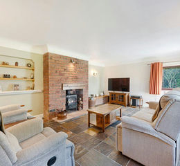 The Property - The property is principally accessed via a traditional Entrance Hall with tiled flooring, from where stairs rise to the first floor and a door leads immediately to the right into a welcoming Living Room, this featuring dual-aspect windows overlooking the gardens and ample space for seating positioned around a centrally situated exposed brick chimney breast which houses a Clearview multi-fuel burner.