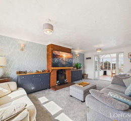Feature fireplace with inset multi fuel burning stove, UPVC double glazed window to front, UPVC double glazed French doors opening to conservatory, two radiators.