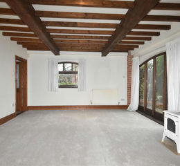 Lounge - 4.95m x 4.27m (16'3 x 14') - Double glazed picture window to the side elevation, double glazed window to the front. Exposed brick pillar, beamed ceiling. Radiator, centre opening wooden part glazed doors opening to the dining kitchen.