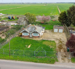Originally containing a 3 bedroom 1930’s bungalow and detached garage, the site has a clean title. The gardens, front and rear are laid to lawn, offer excellent privacy, has three mature trees along the eastern boarder that frame the views from the property. The fertile fenland soil would support, formal gardens, a vegetable patch, or even a chicken run. To the north are farm buildings used for storing potatoes, grain and sugar beat dependant on season.