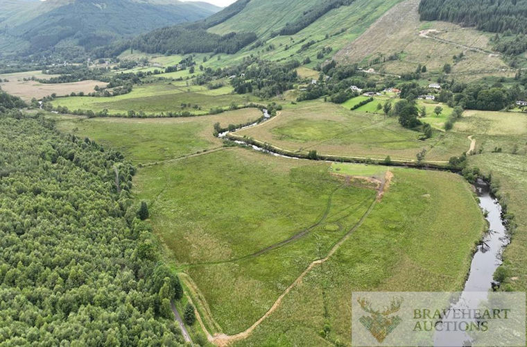 Massive plot in a stunning valley in central Scotland with Fishing Rights within easy reach of Glasgow, Edinburgh and Stirling.