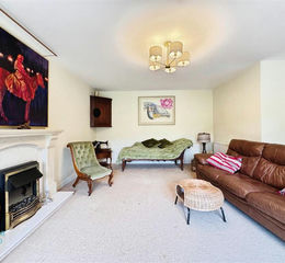 Open Plan Living Dining Room - This beautifully proportioned open-plan living and dining area is designed for modern living, offering an abundance of space for both relaxing and entertaining. Dual-aspect windows fill the room with light, while French doors open directly onto the garden, creating a seamless indoor-outdoor flow. The focal point is a stylish marble fireplace with an electric feature fire, complemented by two radiators for comfort.