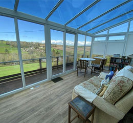 From the front of the property, there is a Storm Porch front door into the Entrance Hall with stairs rising to the first floor. The Study provides a spacious reception room with front aspect, used by the current Vendors as a home-working space. A door leads into the Dining Room a large reception room with rear aspect via archway with sliding doors. The Kitchen/Breakfast Room is fitted with an extensive range of matching base and drawer units with continuous granite work surface over and ample space for table and chairs. Integral appliances include electric oven with hob over, dishwasher and under counter fridge. There is an oil-fired Rayburn supplying the heating and hot water to the property and ample space for a table and chairs. Accessed from the Kitchen and the Dining Room, the Sun Room provides a superb triple aspect versatile space, offering the ideal location to enjoy the views across the open countryside, with sliding doors leading to a decked balcony with steps leading down to the gardens. The Sitting Room provides a front aspect reception room with central stone-built fireplace with inset woodburning stove on brick hearth. From the Kitchen, a door leads into the spacious Utility Room, providing space and plumbing for a washing machine and tumbler drier and additional storage facilities. The Cloakroom is fitted with a close coupled WC and wash basin. From the Utility Room, a pedestrian door leads into the large garage.