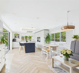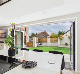 Kitchen/Family Room - Featuring a range of ceiling spot lights, wood effect tiled flooring, underfloor heating, side and rear aspect UPVC double glazed windows and a front aspect almost full width double glazed bi-folding doors. The kitchen has been fitted with a range of base and eye level units with marble effect composite work surfaces, inset one and a half bowl stainless steel sink with adjacent drainer and mixer tap, integrated dishwasher, integrated fridge freezer, integrated double NEFF ovens, a detached central island with a large marble effect composite work top and breakfast bar area with seating space for at least 3 people, an integrated wine rack, a NEFF five ring induction hob with a drop down extractor fan with recessed down lighters.
