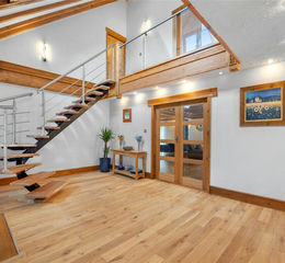 The oak staircase ascends to an impressive galleried first floor landing, creating a sense of space and architectural presence while providing access to all first floor accommodation. This level comprises four generously proportioned bedrooms, each offering comfortable and well balanced accommodation, alongside a beautifully appointed family bathroom, featuring a jacuzzi bath. In addition, a dedicated sauna room introduces an indulgent wellness element.