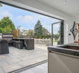 - A substantial patio terrace sits directly off the kitchen, complete with bespoke outdoor BBQ kitchen, fire features and seating zones, ideal for alfresco dining and summer gatherings.