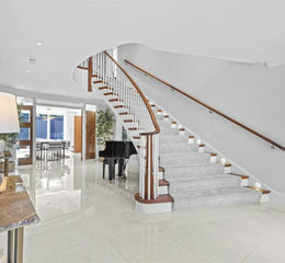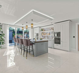This architect-designed property combines elegant Georgian-inspired architecture with cutting-edge modern living, offering an outstanding specification throughout. The impressive galleried reception hall, featuring tiled flooring and a sweeping walnut staircase, creates a striking first impression and sets the tone for the rest of the home.