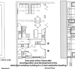 Summary of accommodation of existing building : Arranged on 3 floors, large basement room, ground floor open plan workshop, first floor open plan office, toilet.