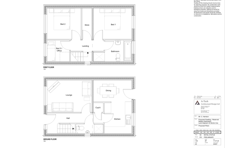 Proposed First Floor Landing, 3 Bedrooms, Bathroom/WC & Store