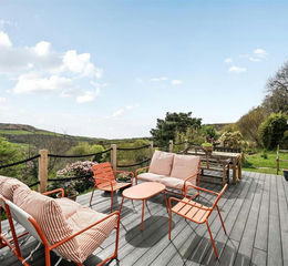 Outside - Set in the 1.26 acres approx are two outbuildings, both with potential to generate income if so desired. There is a fully insulated garden studio with power and water. At the very top of the plot, well away from the main accommodation is a two double bedroom lodge which is in good order and with a wood burner, also blessed with the view like the house below. Off the property an elevated decked terrace provides an excellent place to enjoy the view and is ideal for al fresco dining. The garden itself has a number of areas including a wild flower garden dotted with mature shrubs and trees, a hot tub, as well as a productive garden with a poly tunnel, green house and a number of sheds including a wood store. Beyond the lodge is finally a fruit orchard.