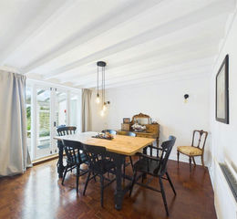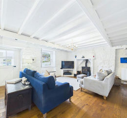 As you enter, you are greeted by a stunning double reception room, adorned with exposed beams and a cosy stove, creating a warm and inviting atmosphere perfect for entertaining or relaxing with loved ones. The property also features two additional reception rooms, providing versatility for various uses, whether it be a home office, playroom, or formal dining area.