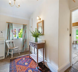 Entering the property, the hallway has plenty of space for coats and boots. Beyond, the kitchen is bright and spacious and of a traditional layout, has ample storage and is set around a woodburning stove, adding a cosy feel. With direct access to the garden through French windows, this room is a delight throughout the changing seasons.