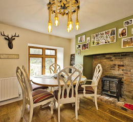 The main cottage is well arranged and full of character. The ground floor comprises a comfortable lounge and a separate dining room, ideal for both everyday living and entertaining. The fitted galley-style kitchen provides practical workspace and storage, complemented by a separate utility room, keeping household tasks neatly tucked away.