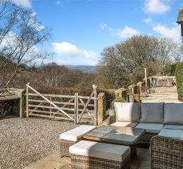 Adjoining the property is an enclosed large stone flagged patio providing a very appealing south facing seating area including a further gated gravel driveway giving vehicle access to fields beyond. Further stone flagged patio enjoying fine long-distance views over woodland to the countryside beyond.