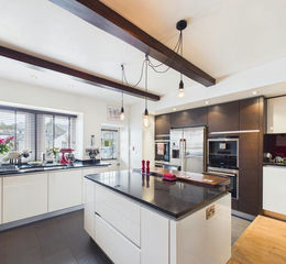 Step in through the front door into the impressive open-plan kitchen diner, an ideal space to enjoy family time or host guests. Fitted with ample wall and base units, the kitchen features high-end integrated Siemens appliances including an induction hob with separate wok burner, extractor hood, dual ovens, microwave, warming drawer and coffee machine. Further integrated appliances include a Bosch dishwasher, wine fridge and a double stainless steel sink with drainage, rinsing tap and waste disposal. A central island provides additional storage and a convenient breakfast bar, while there is plenty of space for a large family dining table and an American-style fridge/freezer. The space is further enhanced by underfloor heating.