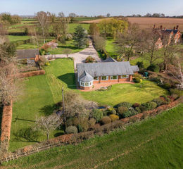 Externally the mature and private plot extends to circa 1.25 acre in total and has large lawned gardens, a vegetable patch, a small pond and beautifully stocked beds and borders, providing an abundance of colour and maturity. The outbuildings comprise a quadruple garage and additional tandem garage with store and provide a combined space of 1114 square feet.