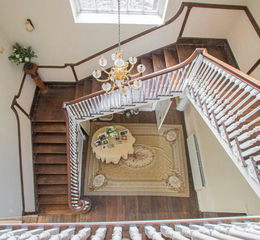 An outstanding original elm turned staircase in the stair hall graces the triple height ceiling with an arched window flooding the hall with natural light. This space serves as a central axis to all the rooms on the ground floor including the kitchen, study and library. Ascending the staircase to the first floor, the central landing runs the length of the house and has doors leading to six bedrooms and the principal shower room. All of the bedrooms are spacious with one of the rooms benefitting from an ensuite bathroom and two with ensuite shower rooms. The principal bedroom enjoys a walk-in dressing room.