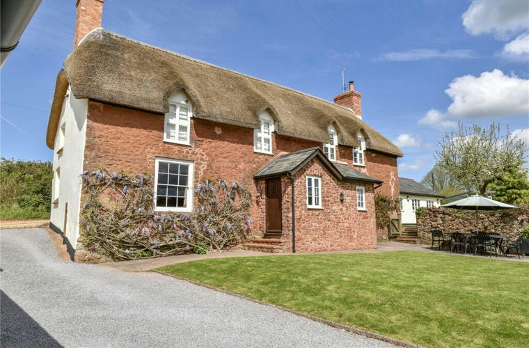 Lower Grants Farmhouse is believed to date from medieval times and presents a particularly attractive stone façade beneath a traditional thatched roof, newly replaced in 2024. A house of rare continuity, has been in the care of only two owners for over a century and is now presented in excellent decorative order, combining historic integrity with well-considered accommodation.