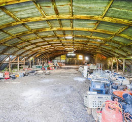 "Substantial open-fronted Nissen-style hangar providing further storage