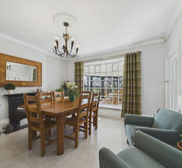 To the front, a full-width conservatory extends the living space and offers uninterrupted views across the garden. Currently used as both a sitting and dining area, it provides a flexible environment suited to both everyday use and larger gatherings.
