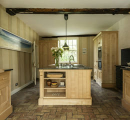 Today, the house extends to over 8,000 sq ft, with six generous bedroom suites arranged across a series of well-proportioned reception rooms. The kitchen, designed by Mark Wilkinson in solid maple, sits at the centre of the house, both practical and quietly elegant.
