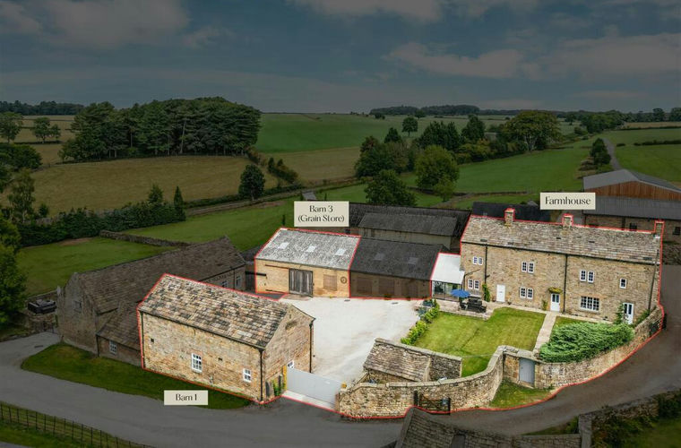Outbuildings: Barn 1 and grain store (barn 3).