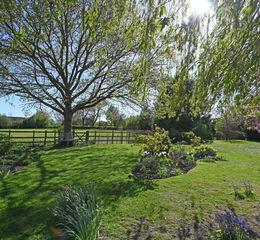 The more formal gardens that surround the house are delightful. These are laid to lawn but contain flowerbeds and an attractive range of trees including a number of fruit trees and a willow that overhangs the pond and an oak. Adjacent to the garage are vegetable beds. Abutting the house itself is a terrace enclosed by a low-level brick wall and box hedging. Steps lead up to the garden itself. Beyond this are meadows that are enclosed by hedging and fencing and here, there is also a summerhouse. In all, the grounds extend to approximately 2.2 acres.