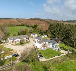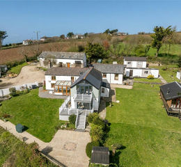 At the heart of the property is the substantial four -bedroom (1 ensuite) detached farmhouse, which has been significantly enhanced by the current owners, including the addition of a two-storey extension. The accommodation is both spacious and well-balanced, offering a superb blend of character and modern living. The ground floor comprises a stunning designer kitchen, a boot room, and utility room and a welcoming living room with two feature fireplaces, one incorporating a wood burner. A generous conservatory enjoys views over the surrounding grounds. To the first floor are four well-proportioned bedrooms, including an impressive principal bedroom with vaulted ceiling and superb countryside and sea views.