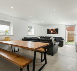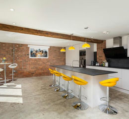 The kitchen has been designed with open plan living in mind, focused around a central island with matching contemporary wall and base units with black work surfaces over. A real feature of this room is the exposed brick walls and supporting brick pillars along with the concrete flooring to finish. There is a number of integral appliances with an important utility located off the kitchen.
